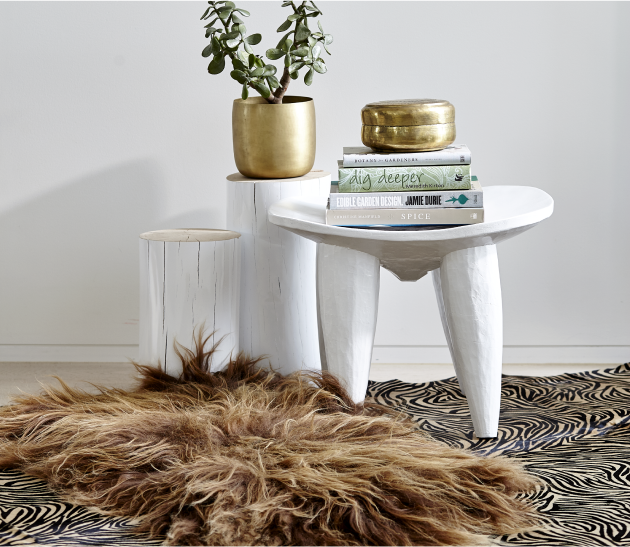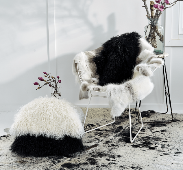 Natural glossy cowhide cushions in robust sizes and elegant Mongolian sheepskin ringlets are available in soft, neutral tones. All of these are perfect to accessorise bedding and sofas.